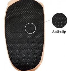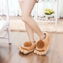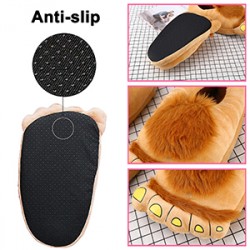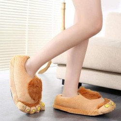 These slippers are covered with light flesh colored polyester and brown faux fur on the top to look like Hobbit feet. impressions on the toes making the hobbit foot more realistic